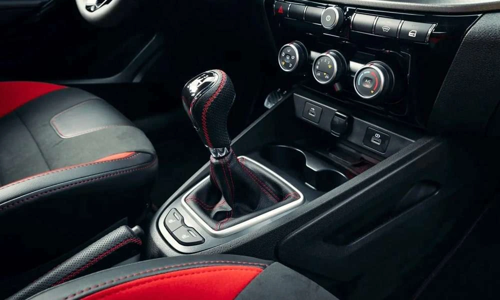 • Отделка руля, чехла КПП кожей с красной отстрочкой